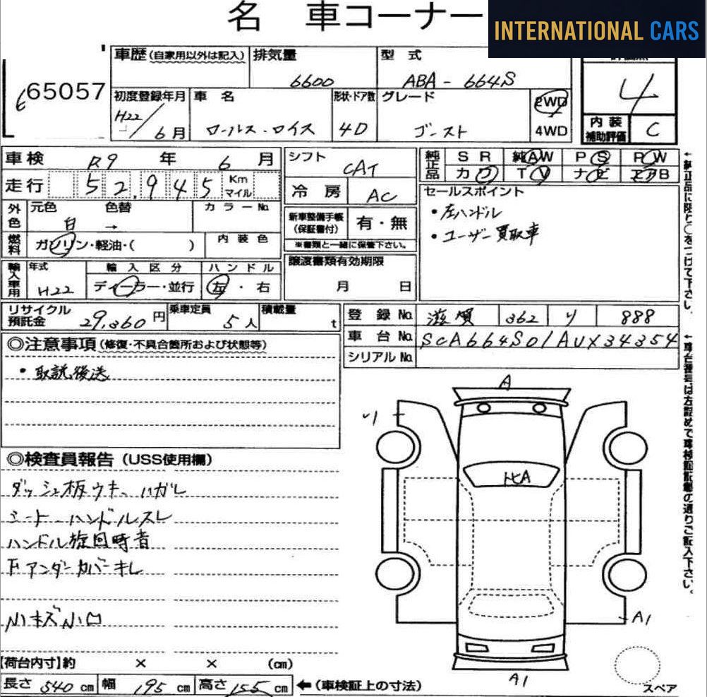 * Codes attribués par les inspecteurs agréés des maisons d'enchères japonaises (USS, TAA, JAA…)