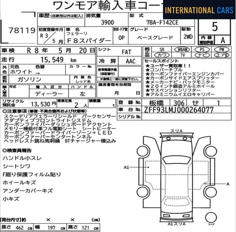 Acheter cette FERRARI F8 SPIDER BASE GRADE aux enchères japonaises, c'est profiter des spécificités d'un marché unique au monde : transparence, faible kilométrage, prix réels.