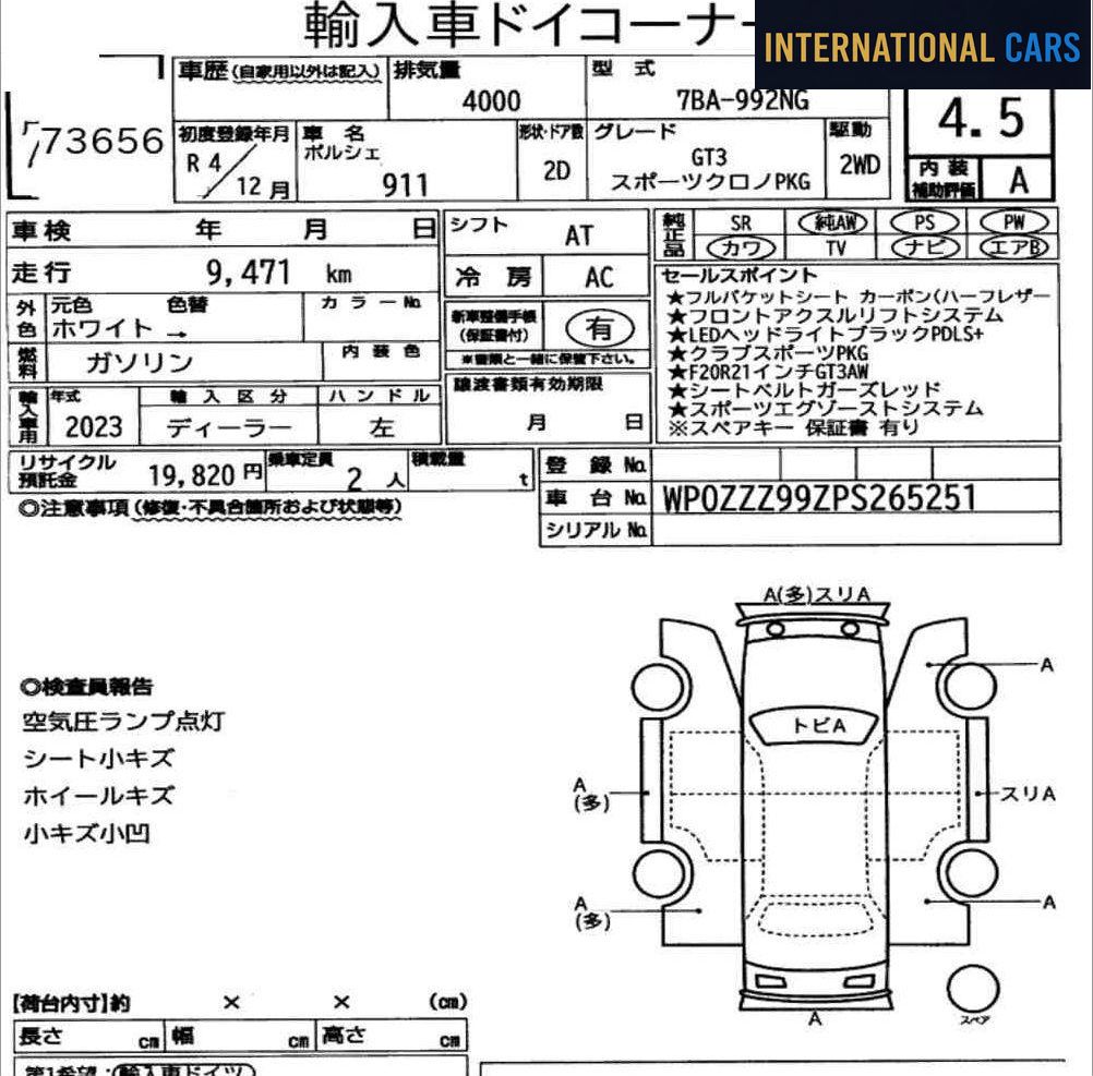 Le Japon est un terrain privilégié pour trouver des PORSCHE 911 CP OTHERS 2022 en excellent état, grâce à son système d'enchères structuré et à ses habitudes d'utilisation.