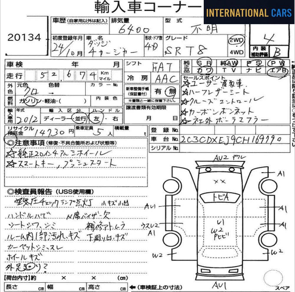Le Japon est un terrain privilégié pour trouver des DODGE CHARGER 4D OTHERS 2012 en excellent état, grâce à son système d'enchères structuré et à ses habitudes d'utilisation.