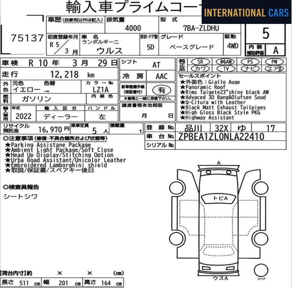 Le Japon est un terrain privilégié pour trouver des LAMBORGHINI URUS 4WD BASE GRADE 2023 en excellent état, grâce à son système d'enchères structuré et à ses habitudes d'utilisation.