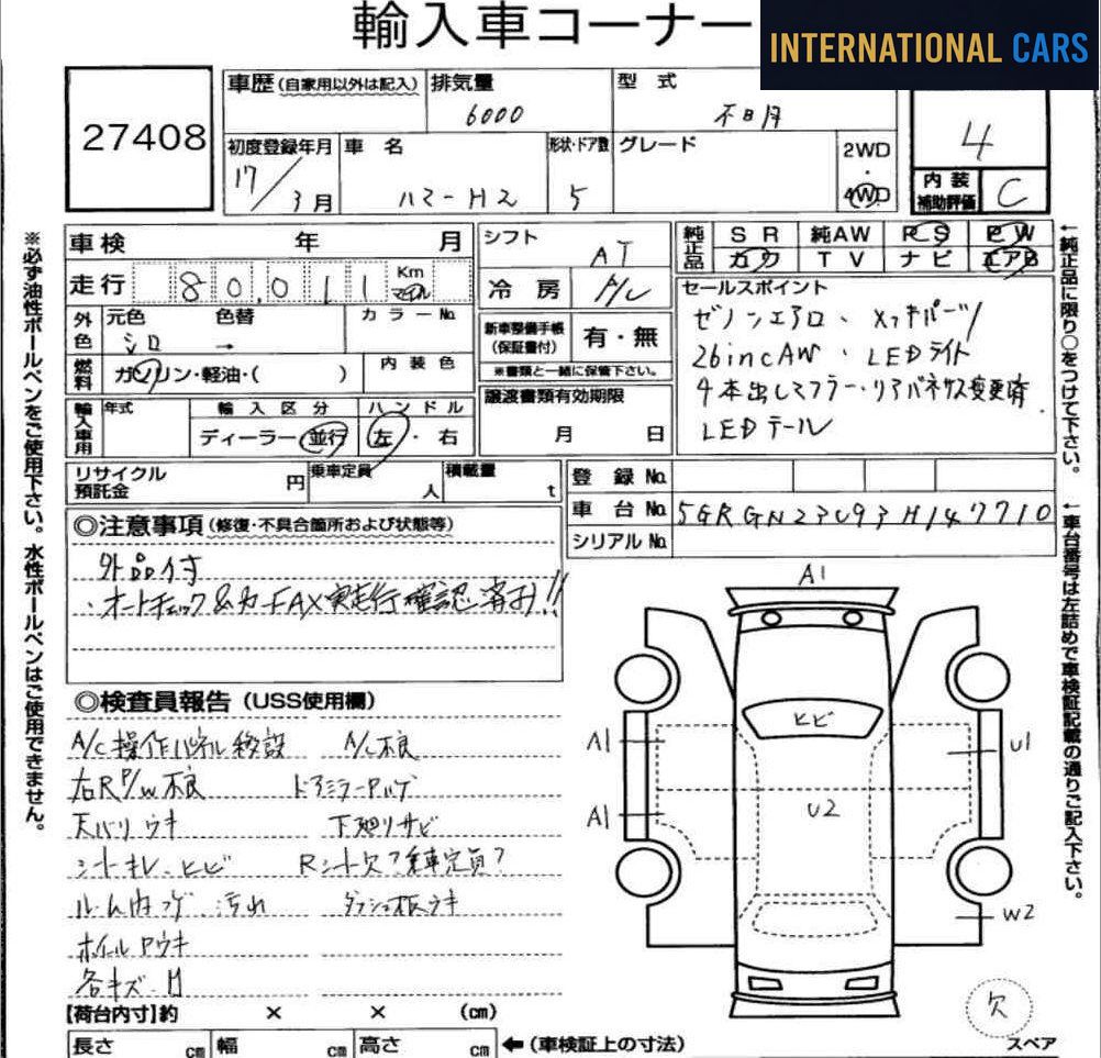 Ce HUMMER H2 5D 4WD année 2005 provient des enchères japonaises — un marché réputé pour la rigueur de ses inspections et la transparence totale de ses rapports. Ce véhicule affiche 81 000 km pour une première mise en circulation en 2005 — motorisation essence et boîte at. Kilométrage dans la moyenne pour l'ancienneté du véhicule.