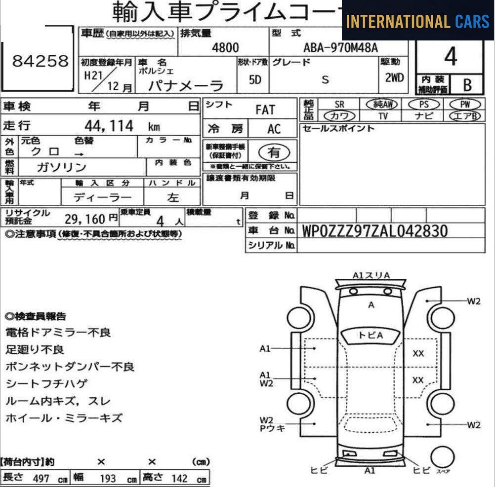 Le Japon est un terrain privilégié pour trouver des PORSCHE PANAMERA 5D S 2009 en excellent état, grâce à son système d'enchères structuré et à ses habitudes d'utilisation.