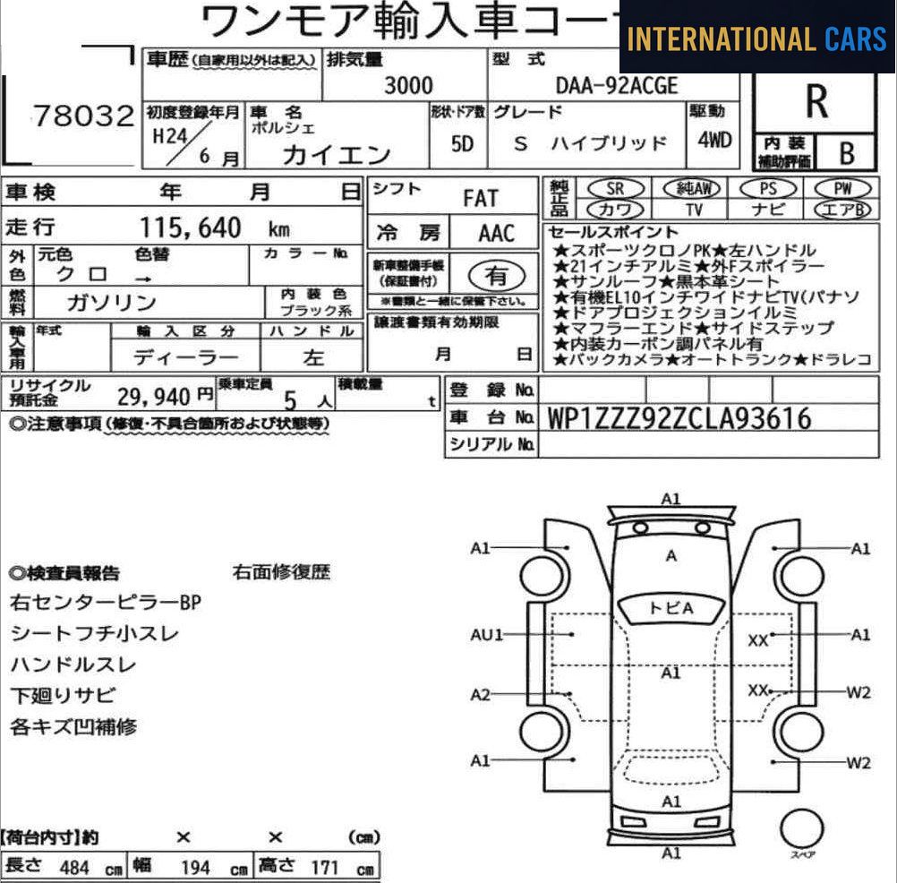 Acheter cette PORSCHE CAYENNE 4WD S HYBRID aux enchères japonaises, c'est profiter des spécificités d'un marché unique au monde : transparence, faible kilométrage, prix réels.