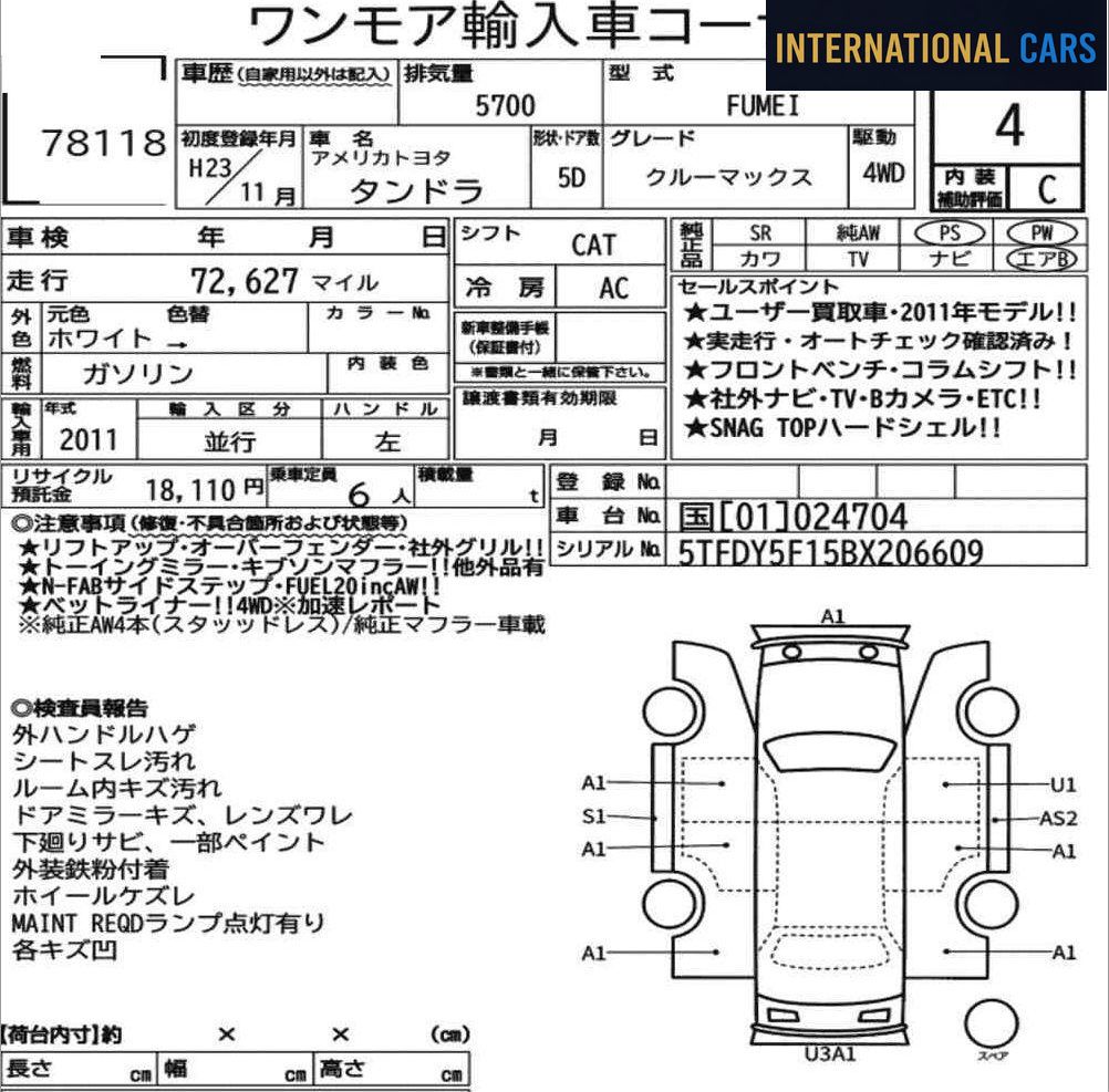Cette AMERICA TOYOTA OTHERS CREWMAX de 2011 est proposée à l'importation directe depuis les salles d'enchères japonaises. Un véhicule sélectionné pour son historique transparent et son état contrôlé. Caractéristiques principales : mise en circulation en 2011, 73 000 km au compteur, motorisation essence, boîte ca. Un parcours raisonnable pour un véhicule de cette année — mécanique et organes d'usure dans les meilleures conditions.