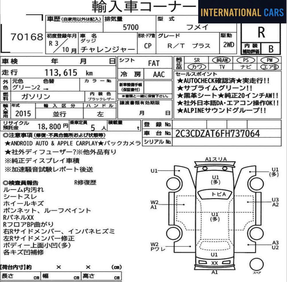Ce DODGE CHALLENGER CP R/T PLUS année 2021 provient des enchères japonaises — un marché réputé pour la rigueur de ses inspections et la transparence totale de ses rapports. Ce véhicule affiche 114 000 km pour une première mise en circulation en 2021 — motorisation essence et boîte fa. Le compteur reflète une utilisation standard — pas de signal d'alerte particulier à ce stade.
