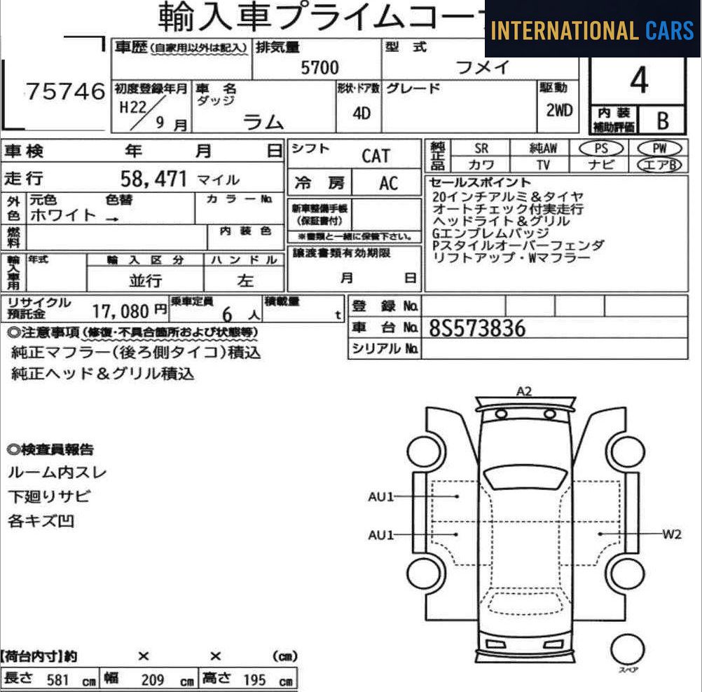 Le Japon est un terrain privilégié pour trouver des DODGE RAM 4D 2010 en excellent état, grâce à son système d'enchères structuré et à ses habitudes d'utilisation.