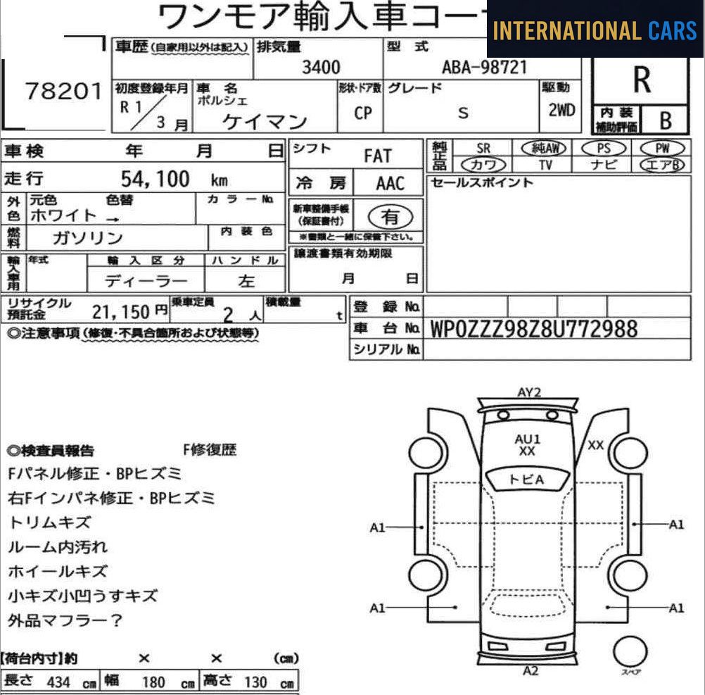 Le Japon est un terrain privilégié pour trouver des PORSCHE CAYMAN S 2009 en excellent état, grâce à son système d'enchères structuré et à ses habitudes d'utilisation.