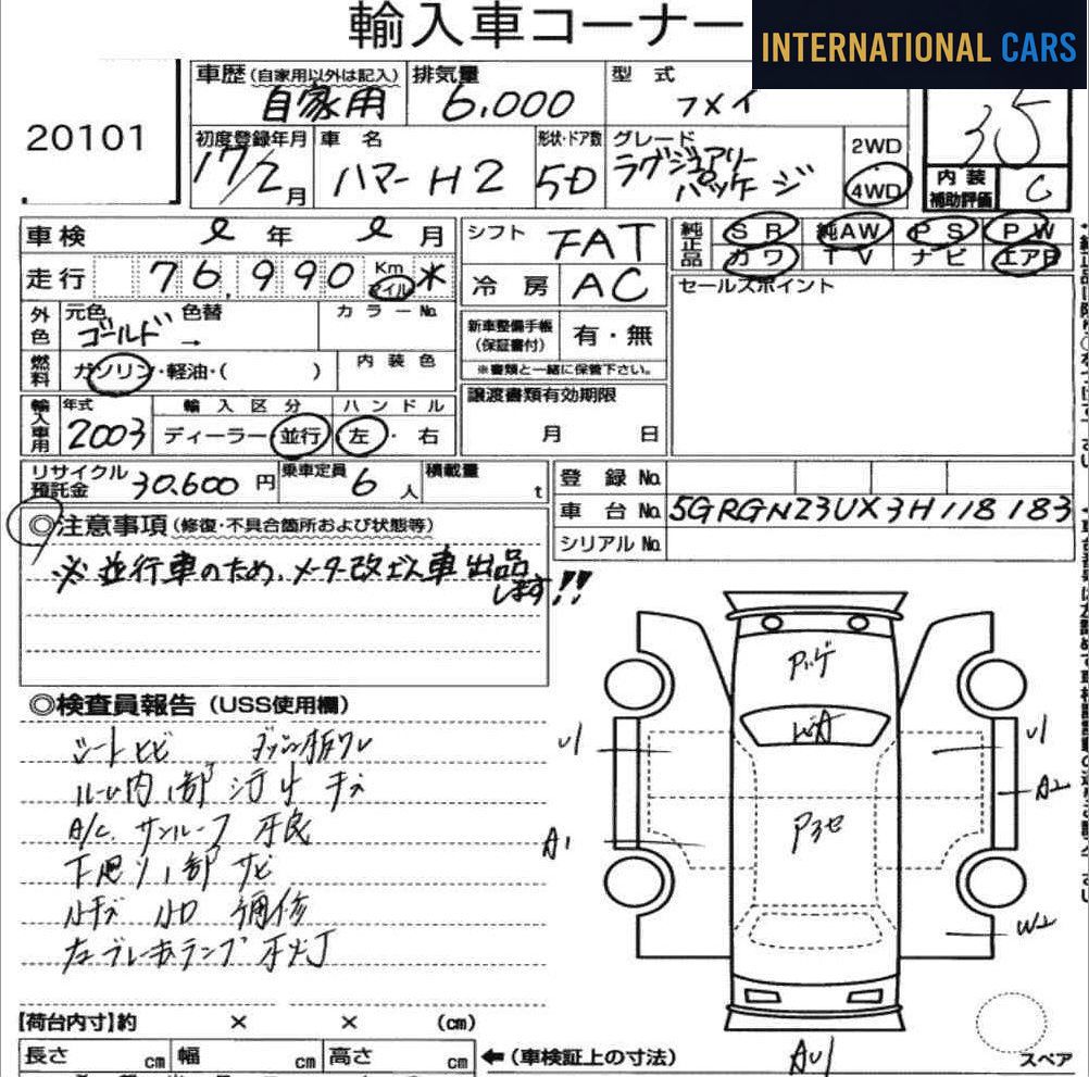 Le Japon est un terrain privilégié pour trouver des HUMMER H2 5D 4WD LUXURY PACKAGE 2005 en excellent état, grâce à son système d'enchères structuré et à ses habitudes d'utilisation.