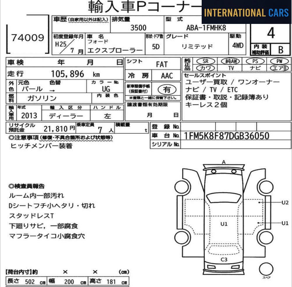 Le Japon est un terrain privilégié pour trouver des FORD EXPLORER 5D 4WD LIMITED 2013 en excellent état, grâce à son système d'enchères structuré et à ses habitudes d'utilisation.